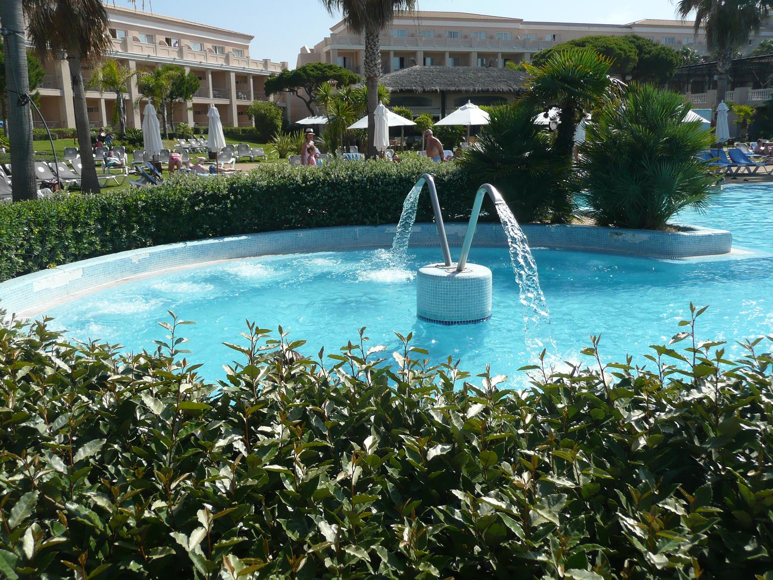 Jacuzzi y chorros de agua, en las piscinas exteriores del hotel