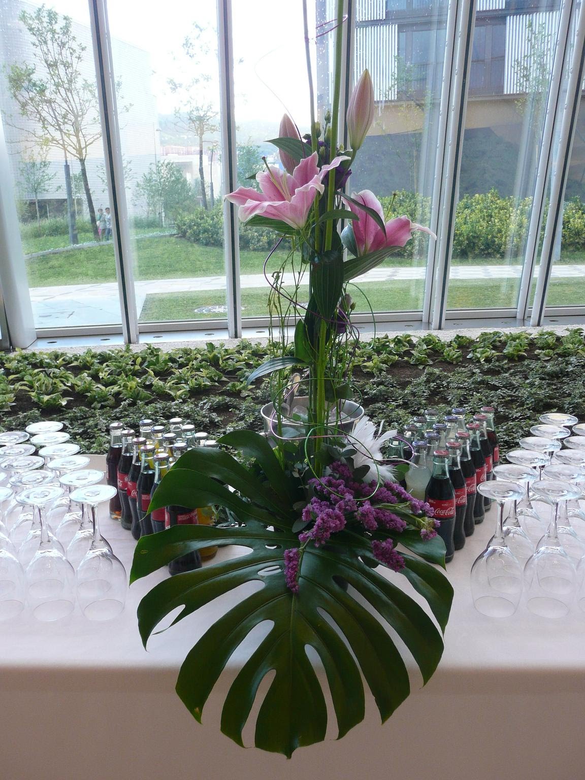 Mesas preparadas con bebidas y decoradas con exquisito gusto