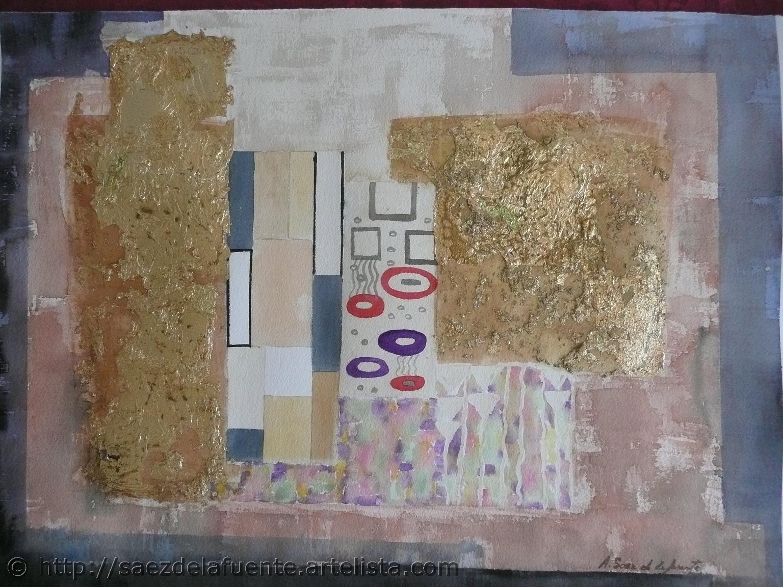 «En homenaje al 150 aniversario del nacimiento del gran artista austriaco Gustave Klimt de principios del siglo XX, me he inspirado principalmente en su obra “El beso”, para pintar una serie de acuarelas con títulosevocadores como “El vals de Klimt”, “Kiss”, “La amiga”, etc.«