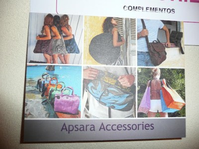 En la foto superior, bolsos con forma del fruto higo. Nos contó una de las creadoras, que se le ocurrió este diseño porque su madre siempre le decía que «tenía el bolso siempre hecho un higo».