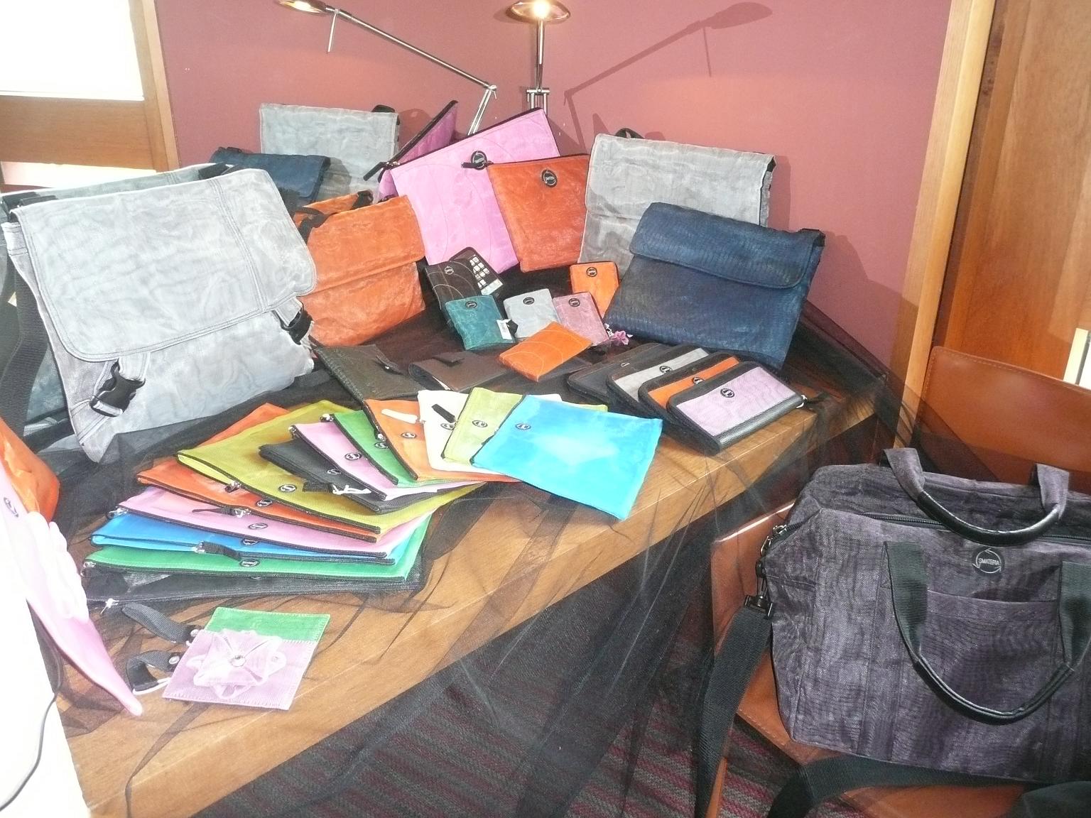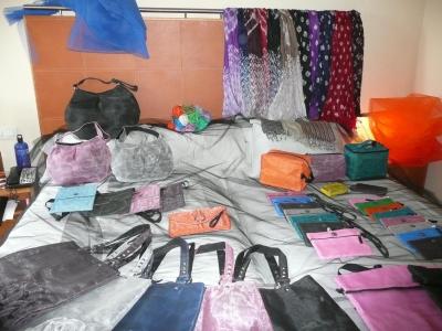 Bolsos, neceseres, portadocumentos, portamóviles, y todo tipo de accesorios creados artesanalmente con «tela mosquitera» que después es teñida, resultando un producto totalmente innovador y muy en tendencia.
