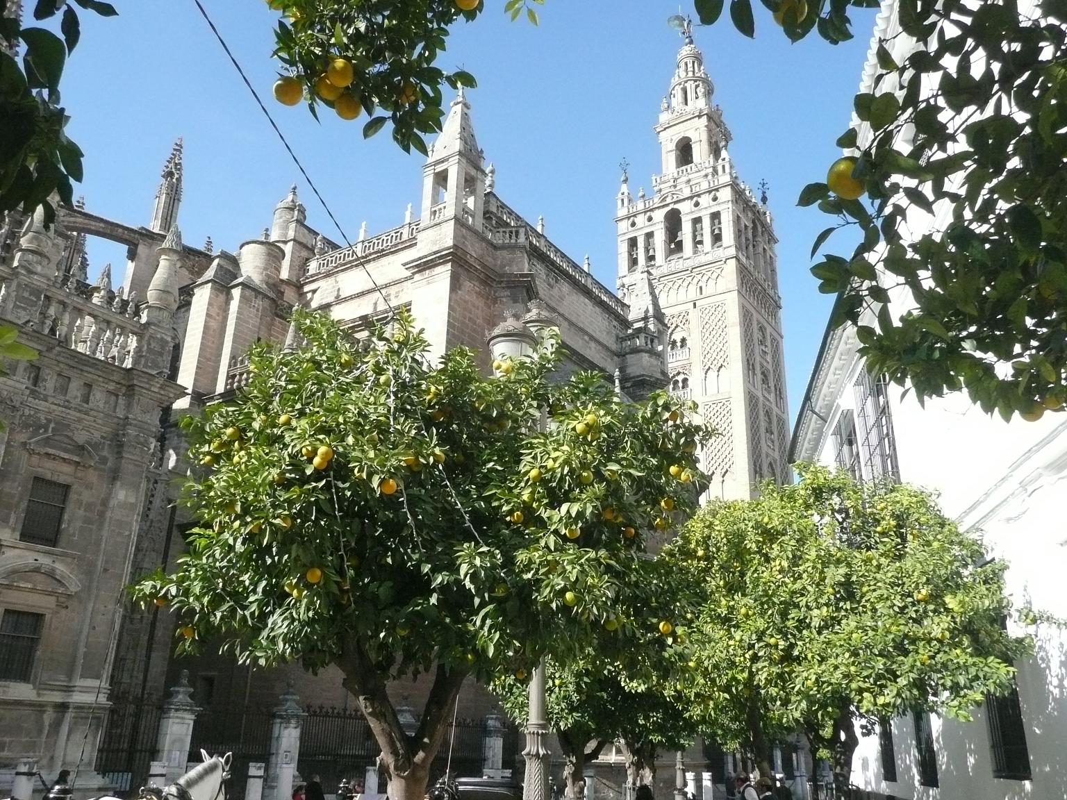 Llegamos a Sevilla en avión desde Bilbao y lo primero que me sorprendió fue la cantidad inmensa de naranjos por toda la ciudad. Además como estamos en noviembre todos estaban repletos de fruta.