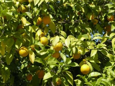 El cielo azul, los árboles verdes llenos de naranjas, algunas palmeras, y una ciudad bellísima!!!