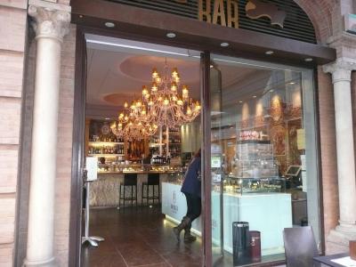 Un Café, «Laredo, Robles» en la calle Sierpes. Lo que más me llamó la atención la lámpara tan bonita que colgaba del techo.