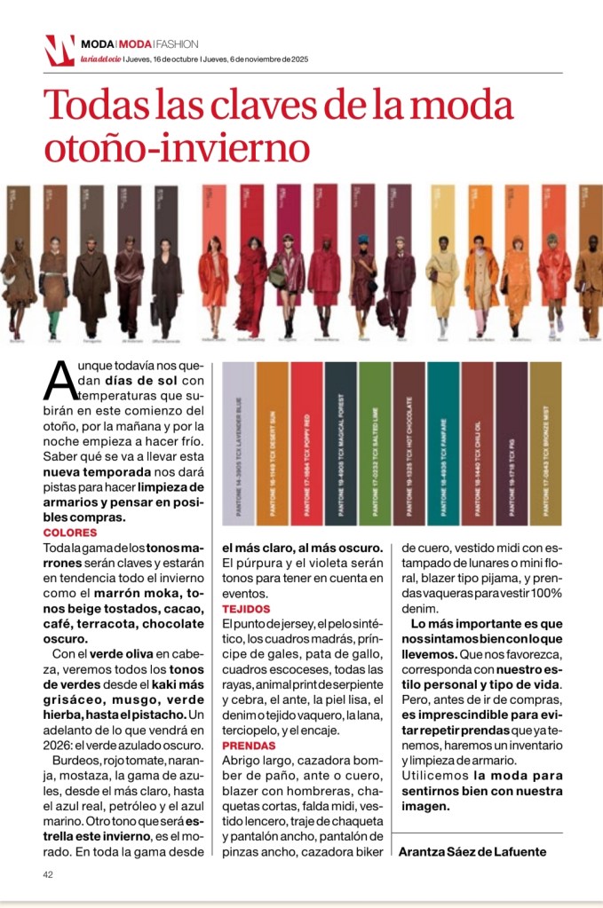 Artículo «Todas las claves de la Moda otoño-invierno» publicado en la revista La Ría del Ocio, nº 1145, página 42
