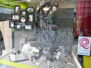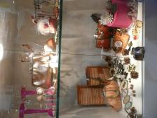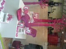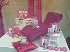 En este escaparate, se vende todo, sí, también el chaise longue fucsia, los taburetes, los cojines, etc., Complementos, accesorios, perfumería y muchos detalles para «Lolitas» coquetas.