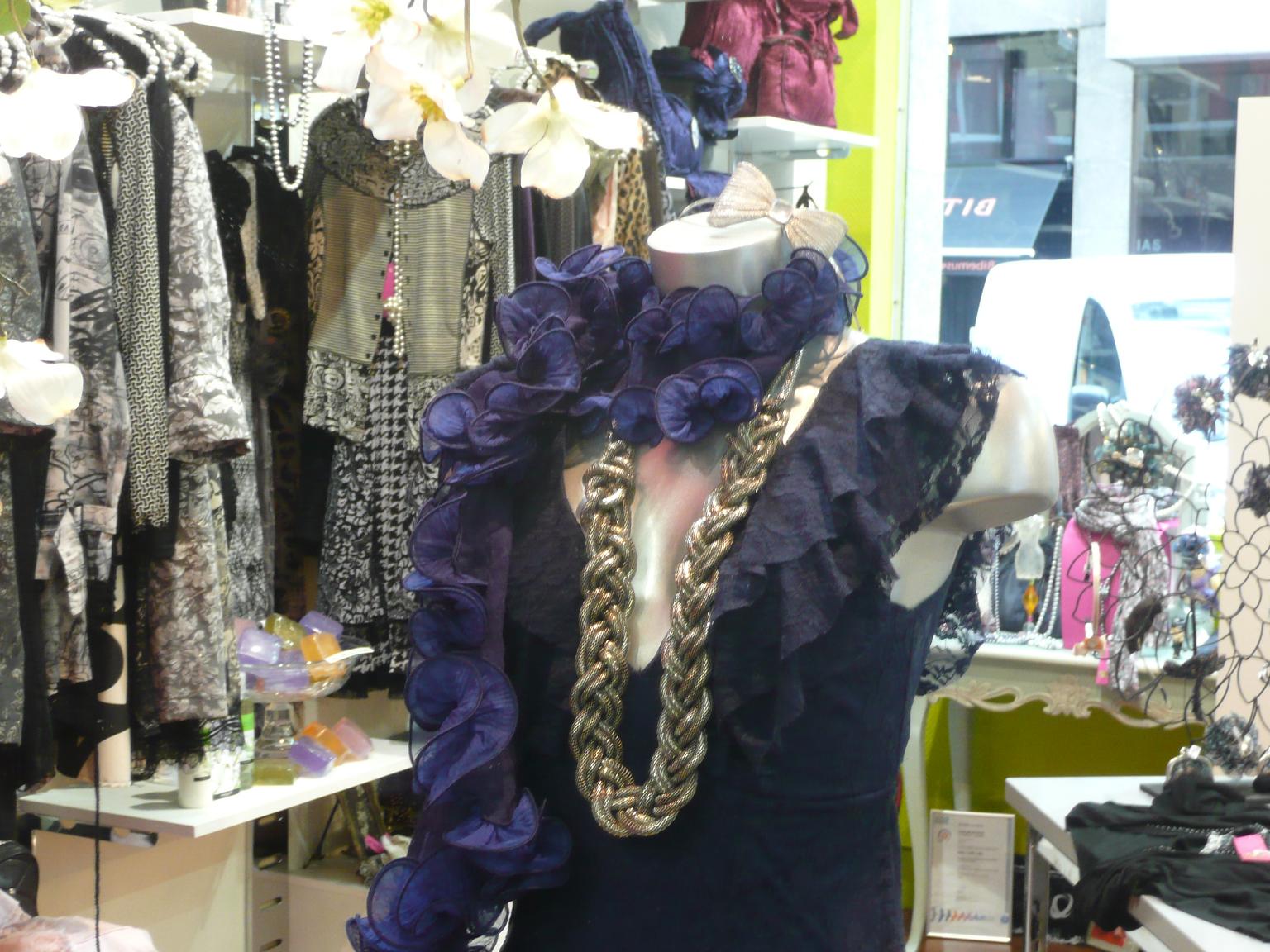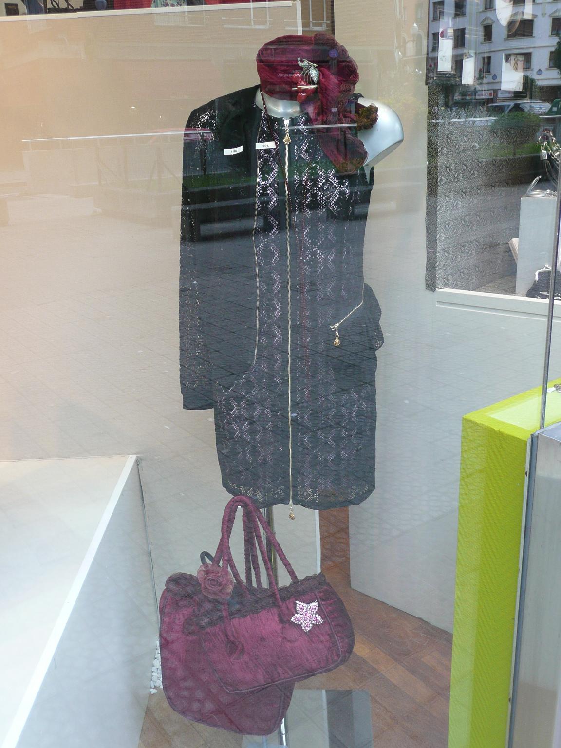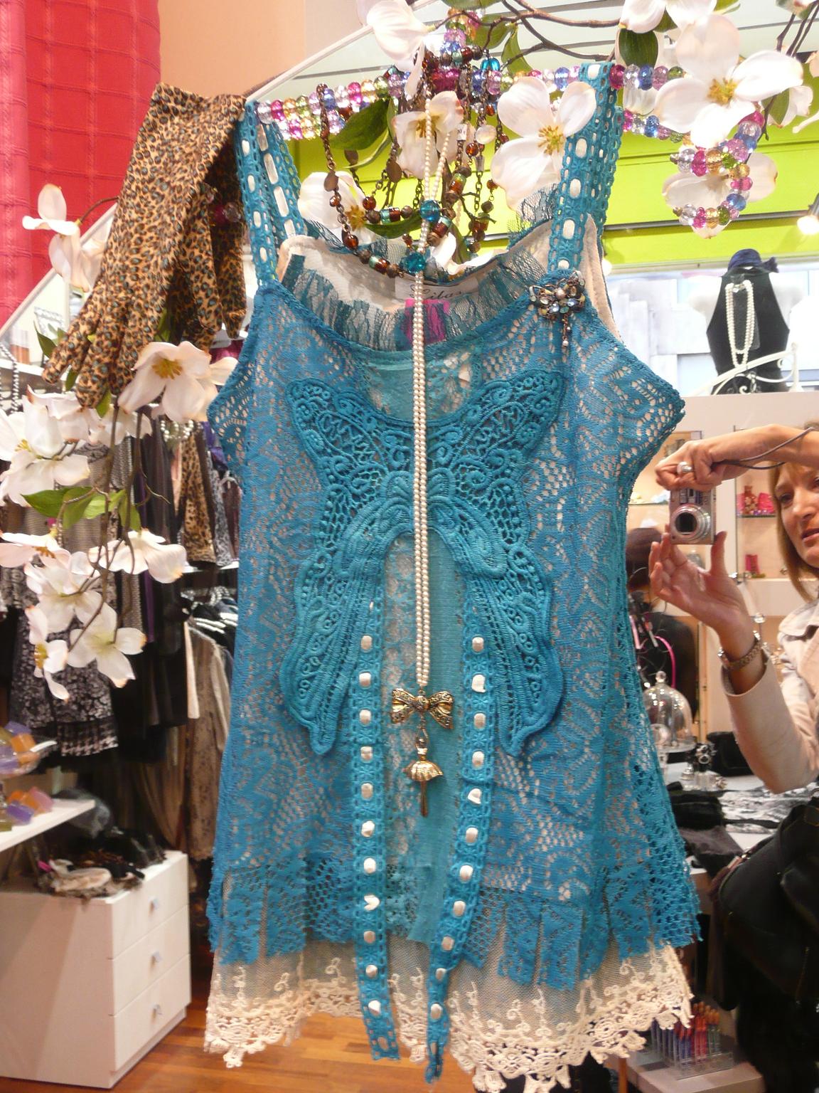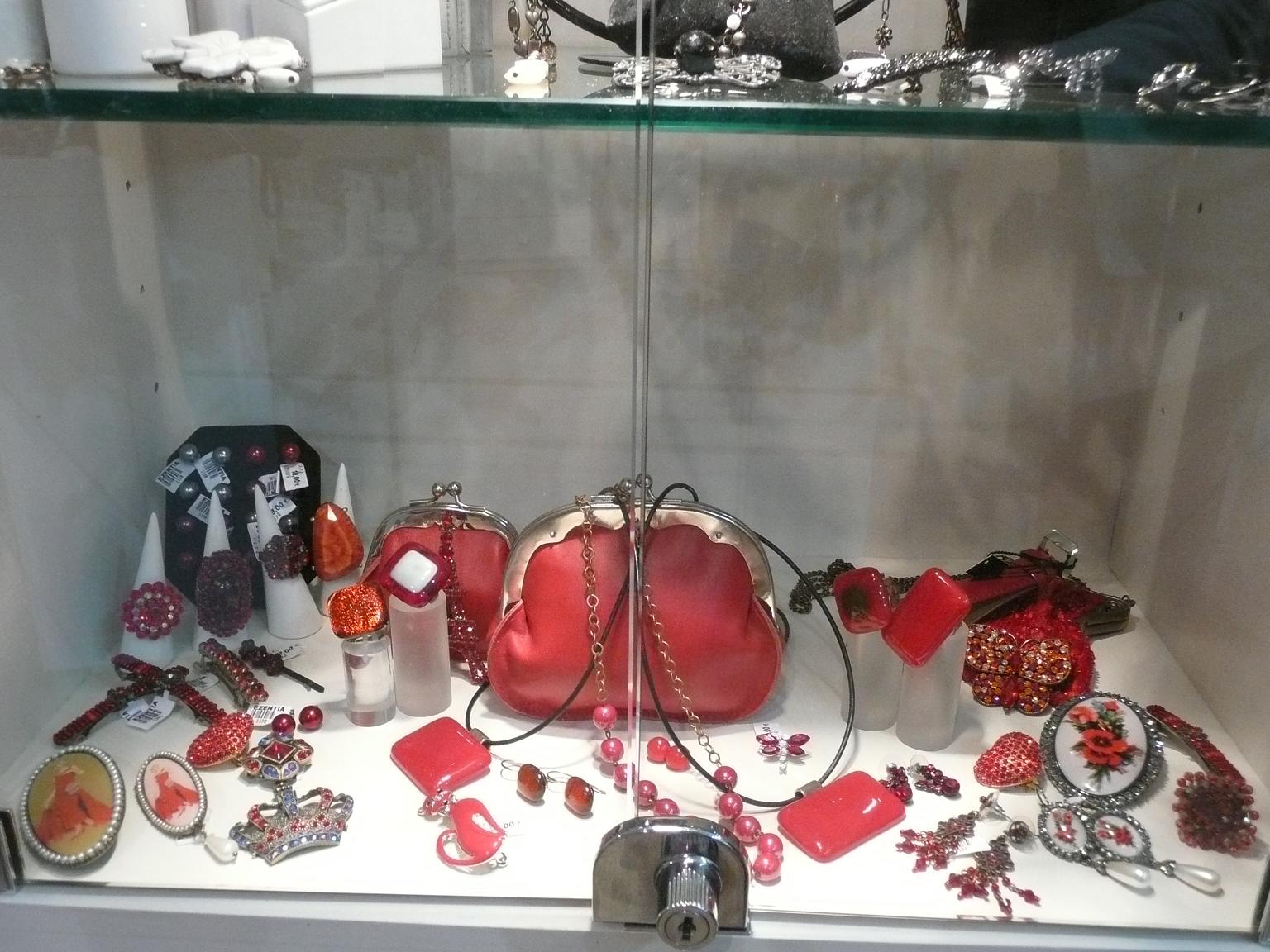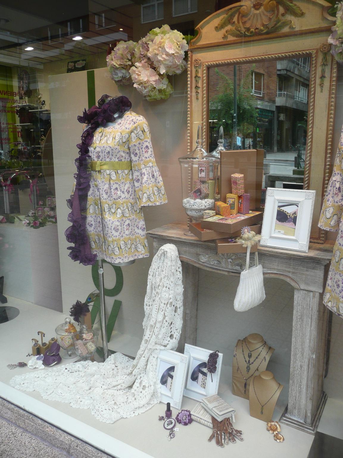 En este escaparate, se vende todo, sí, también el chaise longue fucsia, los taburetes, los cojines, etc., Complementos, accesorios, perfumería y muchos detalles para «Lolitas» coquetas.