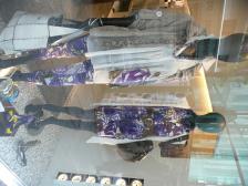 El maniquí de la izquierda, lleva un blusón que disimula tripitas. El pantalón estampado queda genial a piernas muy delgadas. Prendas muy fáciles de llevar en muchos momentos.